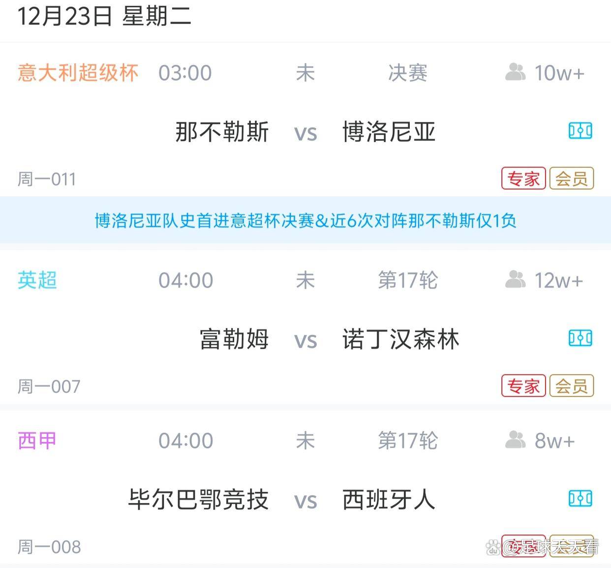 虽然今晚赛事众多,例如非洲杯小组赛和亚冠精英联赛西亚区第六轮等,但最吸引眼球的无疑是几场焦点战役。首先是万众瞩目的意大利超级杯决赛,那不勒斯将与博洛尼亚一决雌雄。此外,英超赛场上,富勒姆将迎战诺丁汉森林;西甲联赛中,毕尔巴鄂竞技则将对阵本赛季的黑马西班牙人。